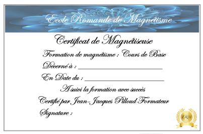 Un certificat de magnétiseur(se) vous est donné à la fin du cours